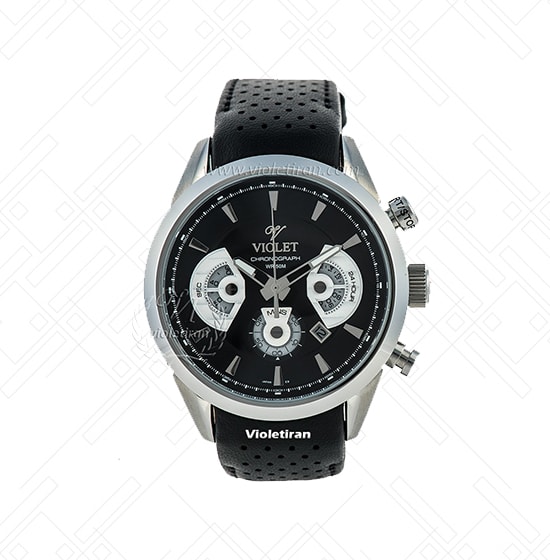 ساعت مچی ویولت، کرنوگراف مردانه، گرد چرمی، استیل صفحه مشکی مدل 0279G