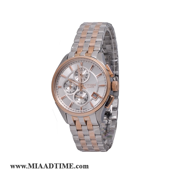 ساعت مچی CITIZEN زنانه کرنوگراف گرد فلزی دو رنگ رزگلد صفحه سفید کد 21437