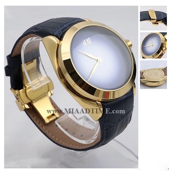 ساعت مچی HM مردانه بند چرم طلایی صفحه روشن کد 11030