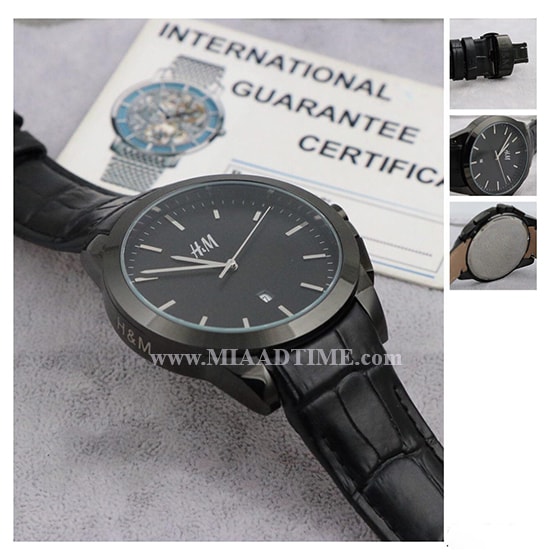 ساعت مچی HM مردانه بند چرم مشکی صفحه مشکی کد 10993