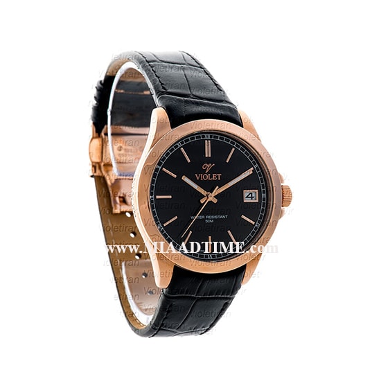 ساعت ویولت مردانه کلاسیک گرد چرمی رزگلد صفحه مشکی مدل 0462/2G