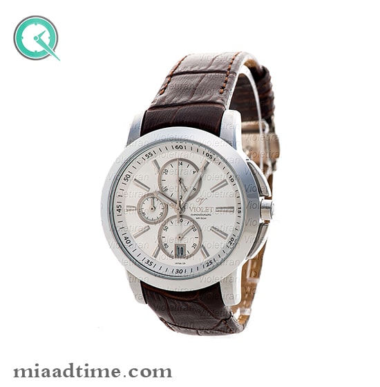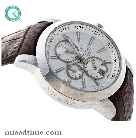 ساعت ویولت Violet زنانه اسپرت گرد چرمی استیل صفحه سفید کد 0409L