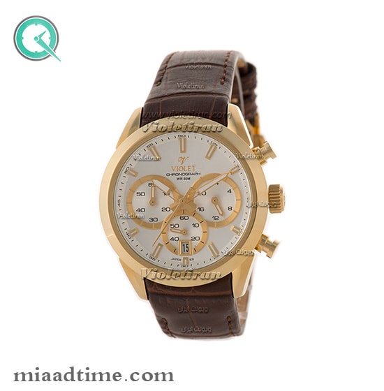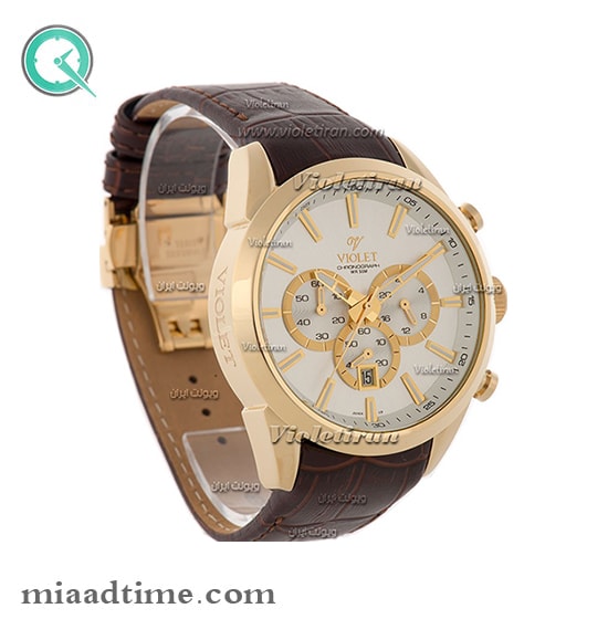 ساعت ویولت Violet زنانه اسپرت گرد چرمی طلایی صفحه سفیدکد 0392/2L
