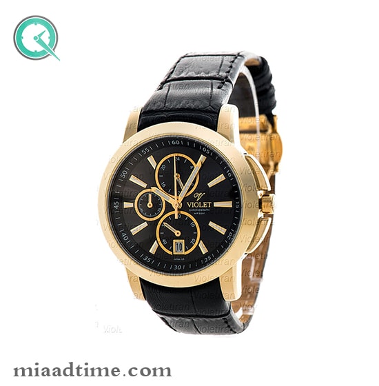 ساعت ویولت Violet زنانه اسپرت گرد چرمی طلایی صفحه مشکی کد 0409/2L