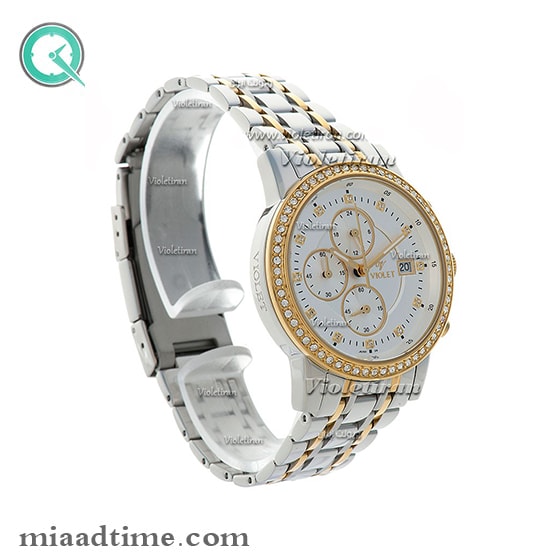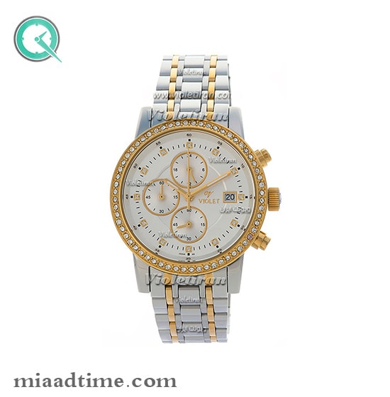 ساعت ویولت Violet زنانه کرنوگراف گرد دور نگین فلزی دورنگ صفحه سفید کد 0376/2L