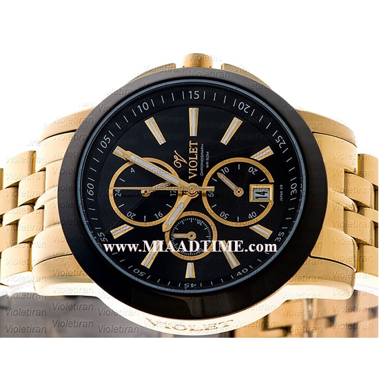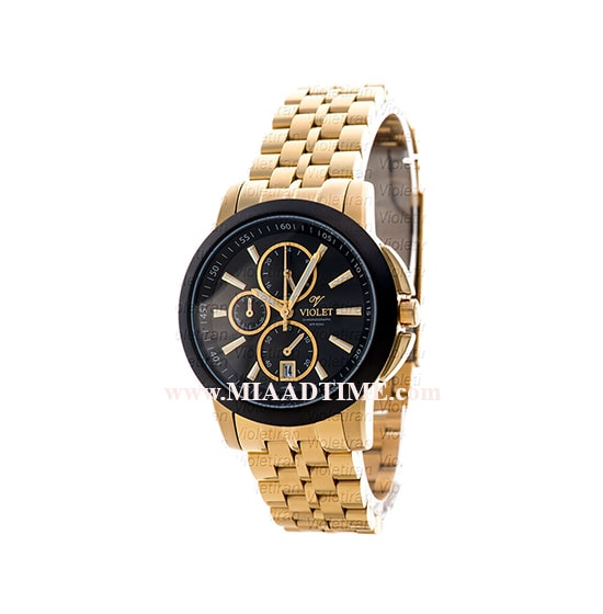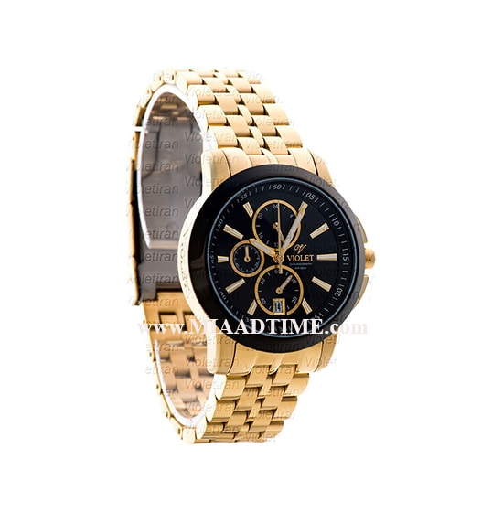 ساعت ویولت Violet زنانه کرنوگراف گرد فلزی طلایی مشکی صفحه مشکی کد 0409/2L