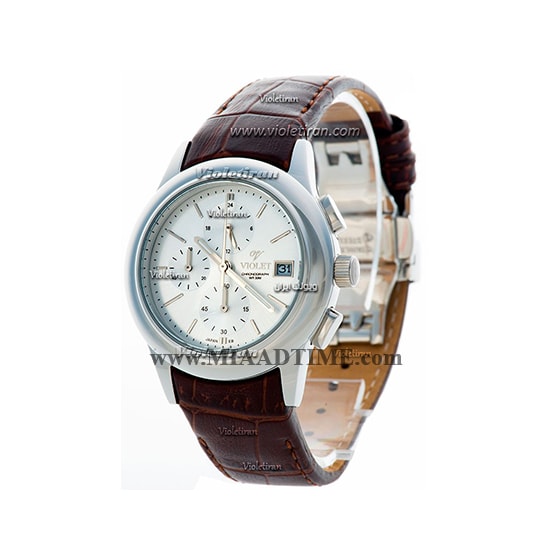 ساعت ویولت Violet زنانه کرنوگراف گرد چرمی استیل صفحه سفید کد 0402L