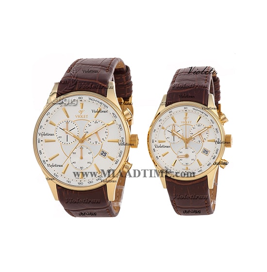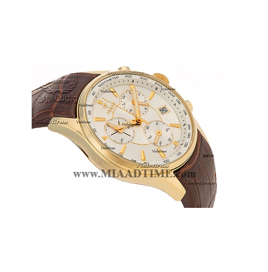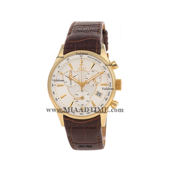 ساعت ویولت Violet زنانه کرنوگراف گرد چرمی طلایی صفحه سفید کد 0358/2L
