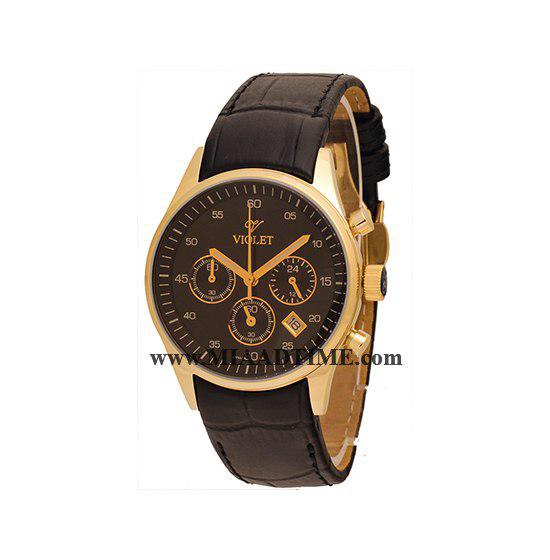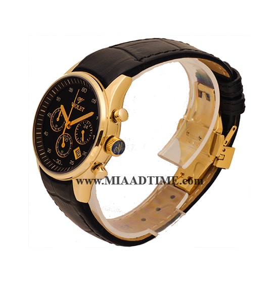 ساعت ویولت Violet زنانه کرنوگراف گرد چرمی طلایی صفحه مشکی شیشه رنگی کد 0227/2L