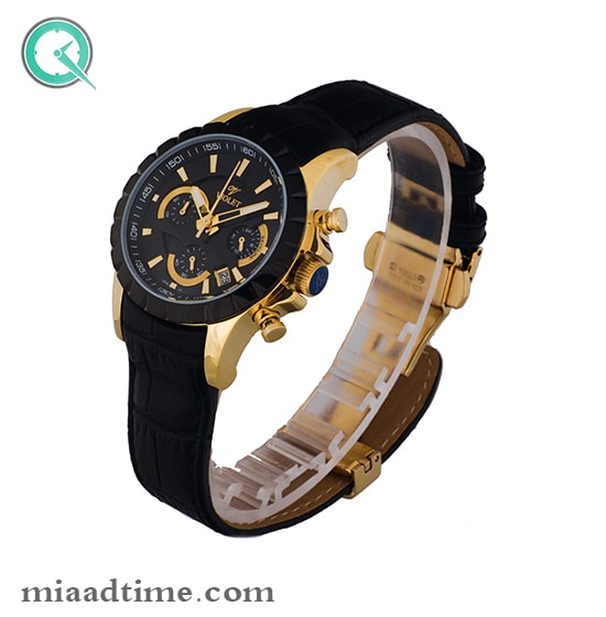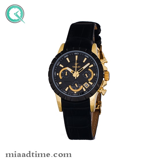 ساعت ویولت Violet زنانه کرنوگراف گرد چرمی طلایی مشکی صفحه مشکی کد 0403/2L