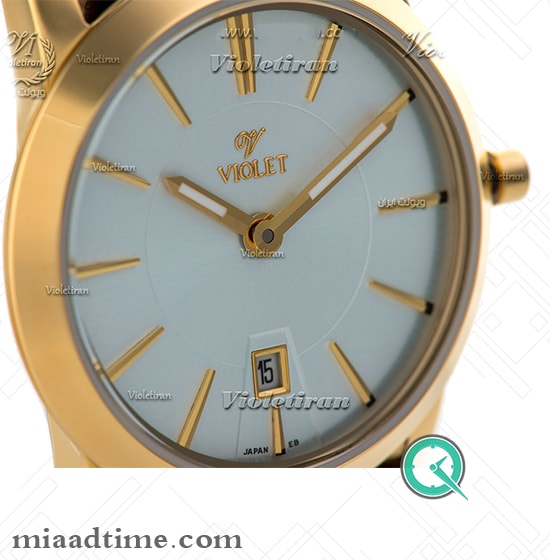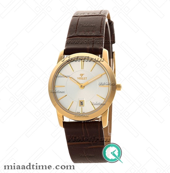 ساعت ویولت Violet زنانه | کلاسیک, گرد چرمی, طلایی صفحه سفید | کد 0420/2L