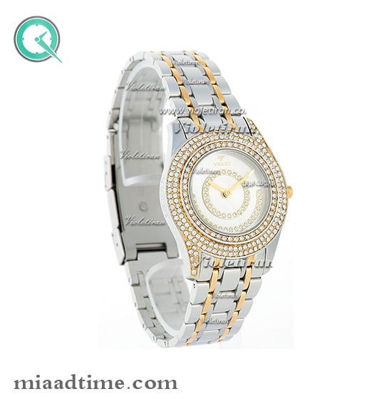 ساعت ویولت Violet زنانه گرد نگین دار فلزی دو رنگ صفحه سفید کد 0380/2L