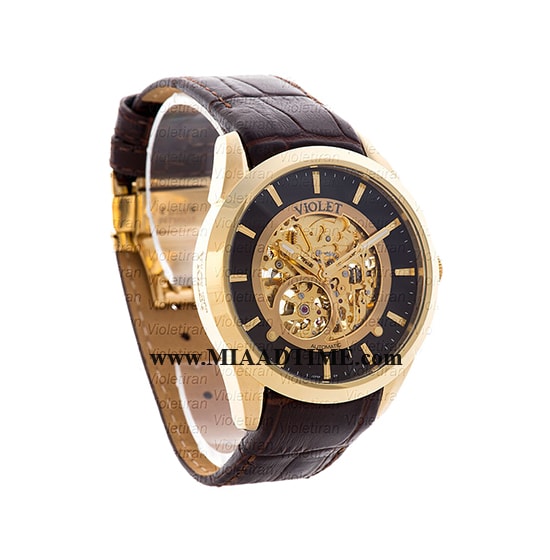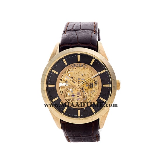 ساعت ویولت Violet مردانه اتوماتیک گرد چرمی طلایی صفحه قهوه ای کد 0432/2G