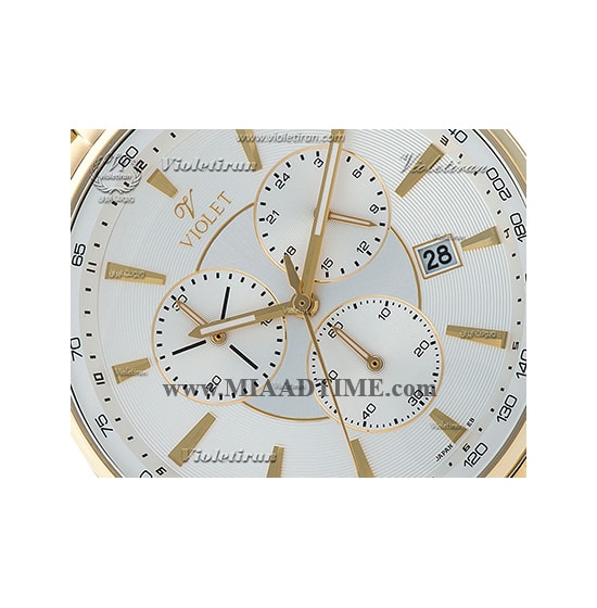 ساعت ویولت Violet مردانه کرنوگراف گرد فلزی طلایی صفحه سفید کد 0358/2G