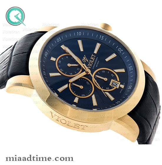 ساعت ویولت Violet مردانه کرنوگراف گرد چرمی طلایی صفحه سرمه ای کد 0409/2G