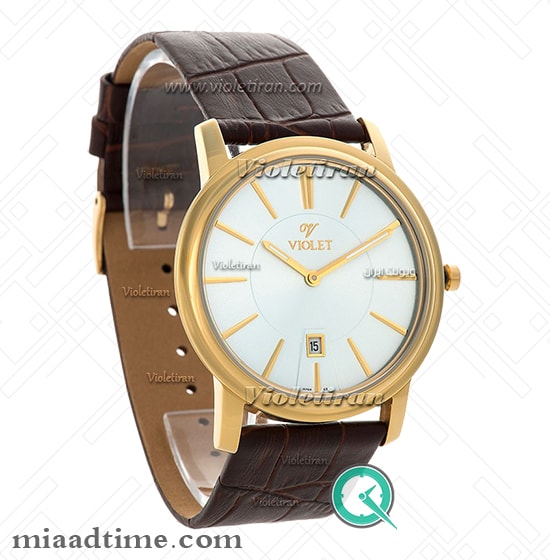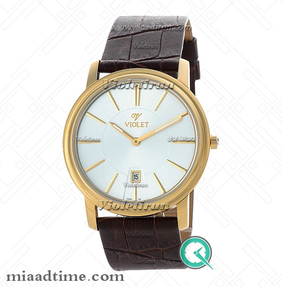 ساعت ویولت Violet مردانه | کلاسیک, گرد چرمی, طلایی صفحه سفید | کد 0420/2G