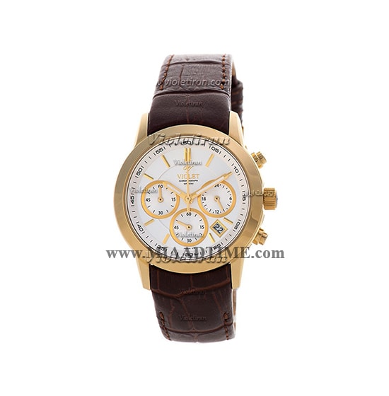 ساعت ویولت Violet زنانه اسپرت گرد چرمی طلایی صفحه سفید کد 0408/2L