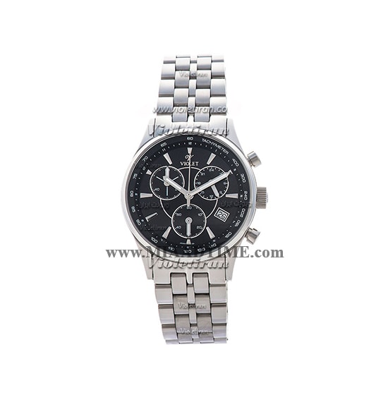 ساعت ویولت Violet زنانه کرنوگراف گرد فلزی استیل صفحه مشکی کد 0358L
