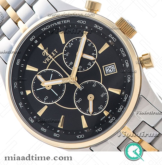 ساعت ویولت Violet زنانه | کرنوگراف, گرد فلزی, دورنگ صفحه مشکی | کد 0358/2L