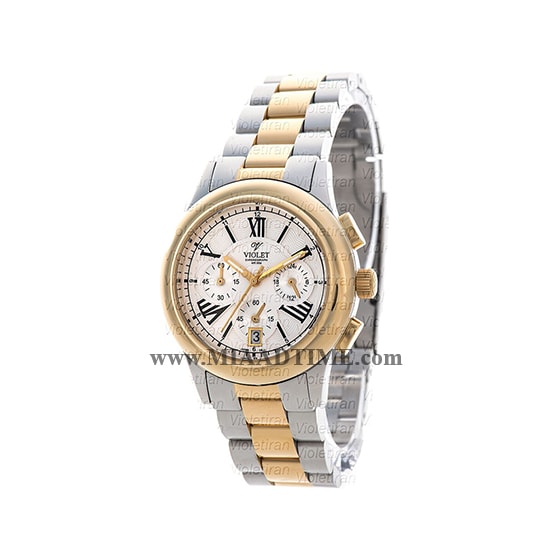 ساعت ویولت Violet زنانه کرنوگراف گرد فلزی دو رنگ صفحه سفید مدل 0401/2L