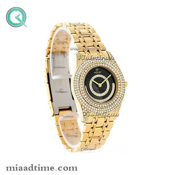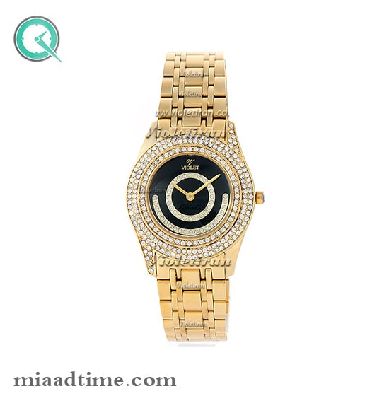ساعت ویولت Violet زنانه گردنگین دار فلزی طلایی صفحه مشکی کد 0380/2L