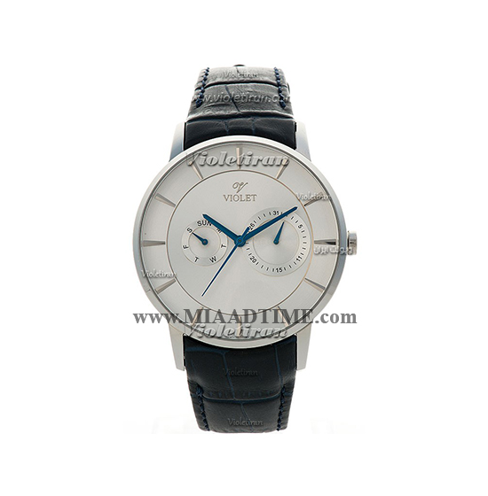 ساعت ویولت Violet مردانه فول دیت گرد چرمی استیل صفحه سفید کد 0316G