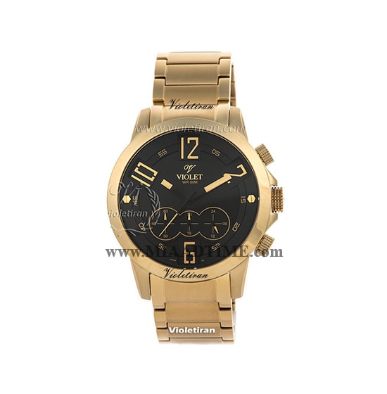ساعت ویولت Violet مردانه کرنوگراف گرد فلزی طلایی صفحه مشکی کد 0244/2G