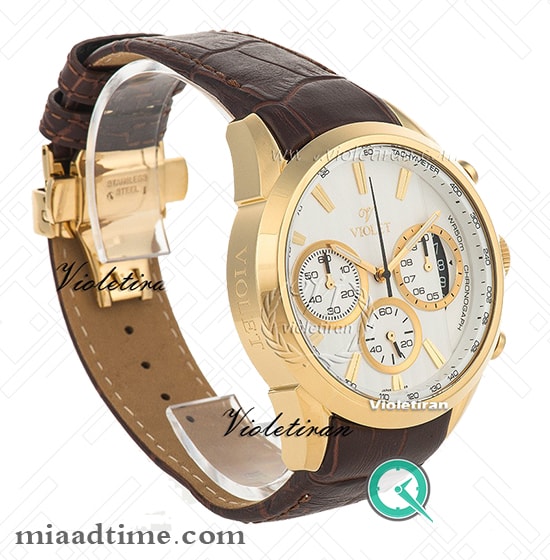ساعت ویولت Violet مردانه | کرنوگراف، گرد چرمی، طلایی صفحه سفید | کد 0320/2G