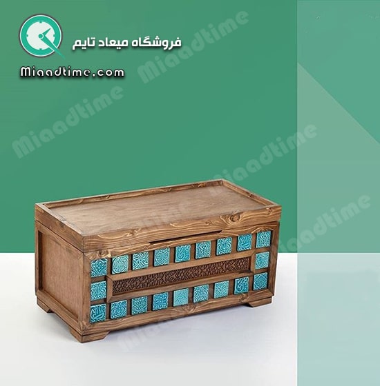 این صندوق چوبی که بر روی آن از طرح های خاص و همچنین از رنگ فیروزه ای استفاده شده است آن را زیباتر جلوه می دهد. این صندوق ها مناسب هر فضایی هستند. طرح آن به سبک سنتی و قدیمی است. در عین حال شیک و مورد پسند همگی است. جنس چوب آن از کیفیت بالایی برخوردار است. فروشگاه میعادتایم همیشه سعی بر این داشته است که بهترین کیفیت را به مشتریان خوب خود عرضه نماید.