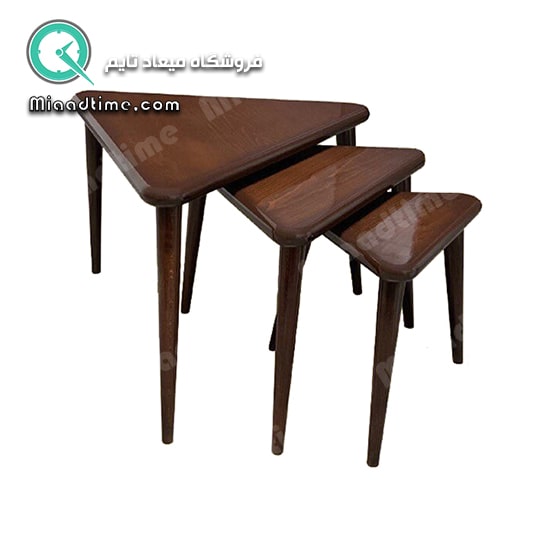 میز عسلی سه تیکه چوبی لوتوس مثلثی مدل GIOVANNA-736-BR