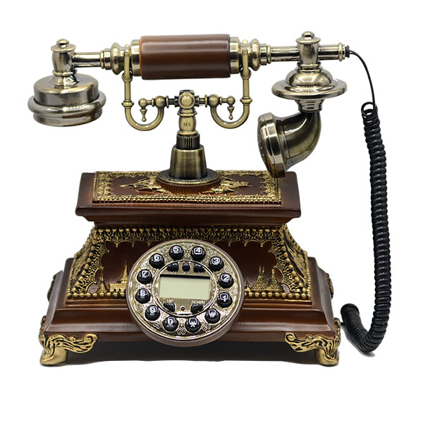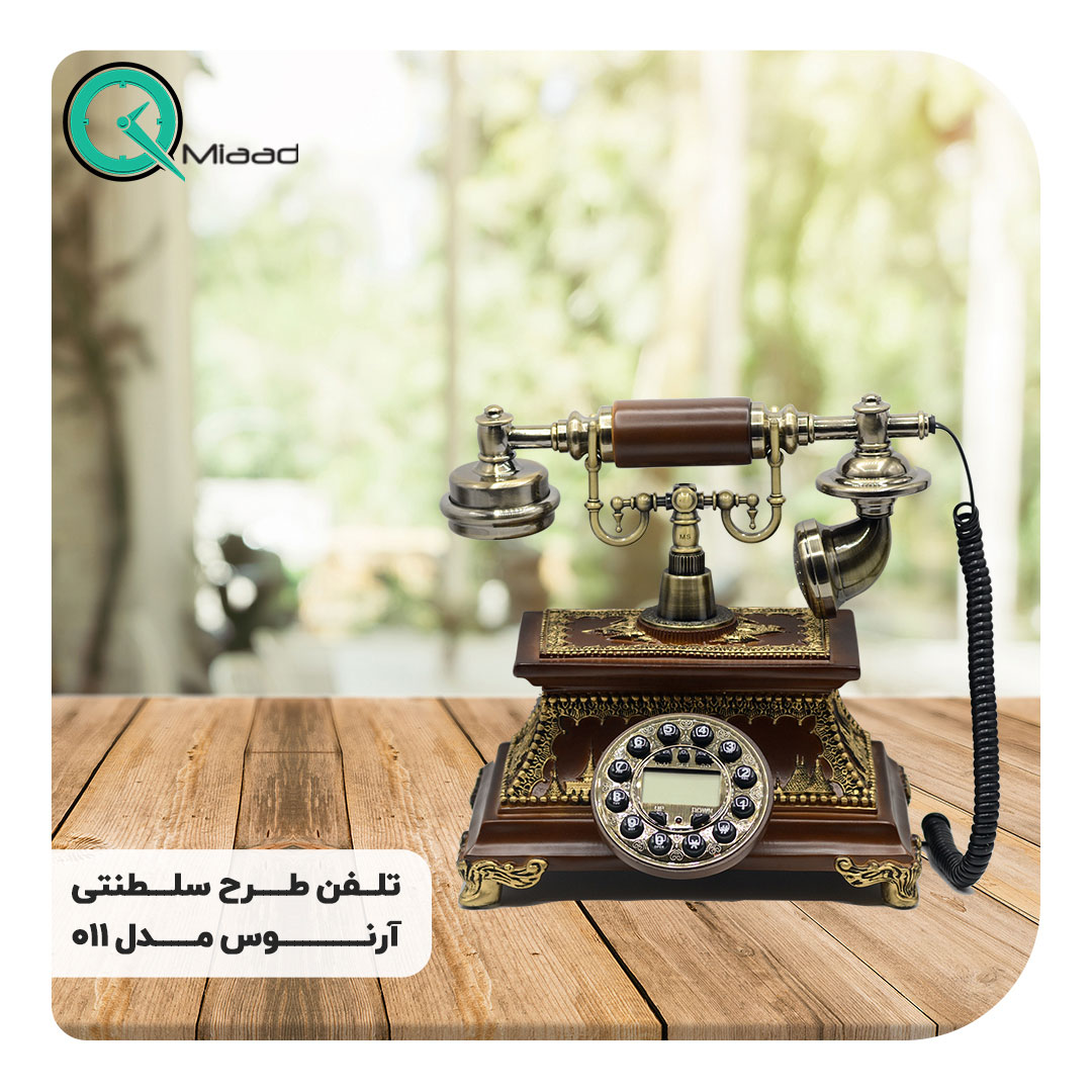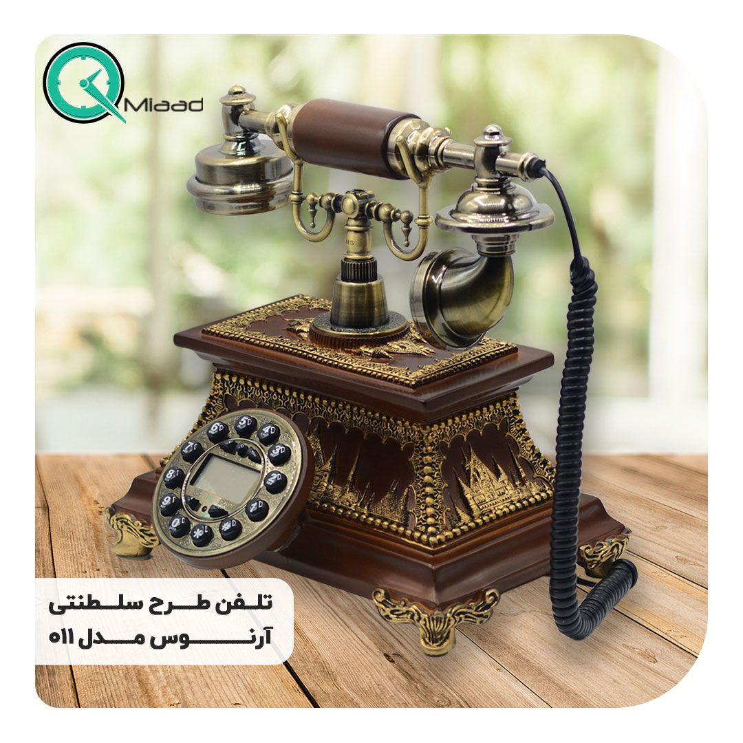 تلفن رومیزی آرنوس، تلفن کلاسیک سبک قدیمی، تلفن دکوراتیو و نوستالژی دست ساز از جنس رزین با رنگ قهوهای و آنتیک دارای کالر آیدی | کد 011