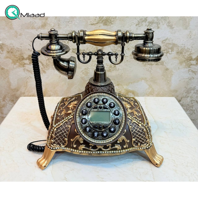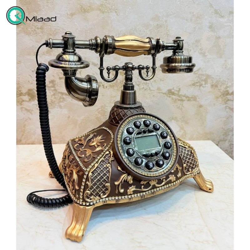 تلفن تزیینی و سلطنتی مدل 115 رنگ قهوه ای از سری محصولات تلفن سلطنتی میعاد تایم می باشد. تلفن های سبک کلاسیک و قدیمی با توجه به نوع شماره گیر چرخشی ای و دکمه ای که دارند و مدل گوشی هایشان بسیار پرطرفدار هستند و حس نوستالژیک دارند و با توجه ظاهر زیبا و جذاب حتی به عنوان یک وسیله دکوری در منزل و یا محل کار نیز مورد استفاده قرار می گیرند.