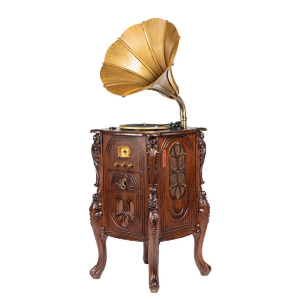 گرامافون ایستاده آنتیک مدل2208 محصول زیبایی است که در قسمت گرامافون میعاد تایم برای شما موجود شده است. گرامافون نوعی دستگاه مجلل و کلاسیک است که زمانی در بین علاقه مندان به موسیقی به عنوان یک پخش کننده موسیقی سنتی رایج بود. گرامافونهای مجهز به دلیل جذابیت همیشگیشان، به دلیل زیبایی و ظرافت منحصربهفرد، اکنون به عنوان دکور اداری یا منزل بسیار محبوب هستند. علاوه بر این، برخی از این گرامافون ها دارای ساختاری زیبا و ترکیبی با طراحی مدرن هستند تا افراد با دکوراسیون مدرن تر بتوانند از این دستگاهها استفاده کنند. این دستگاه در گذشته اغلب در دربار و خانه های اشرافی یافت می شد. امروزه گرامافون هایی ساخته می شود که علاوه بر حس نوستالژیک، دارای ویژگی های متعددی برای مطابقت کامل با دنیای امروز هستند.
