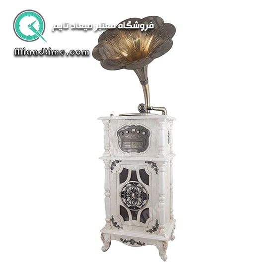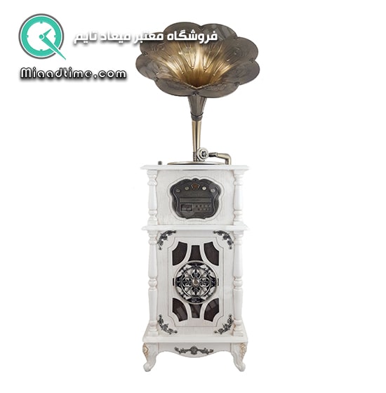 گرام با شیپور کلاسیک قابلیت پخش CD-MP3-DVD ورودی درگاه USB قابلیت اتصال از طریق بلوتوث رادیو استریو 2 موج AM/FM | گرامافون با قابلیت پخش صفحه با سه سرعت دور ضبط شده،ورودی درگاه Aux، دارای خروجی های صدا و تصویر، قابلیت پخش صدا به صورت استریو، دارای صفحه LED جهت نمایش عملیات CD، کنترل از راه دور جهت عملیات تنظیم CD-MP3-DVD