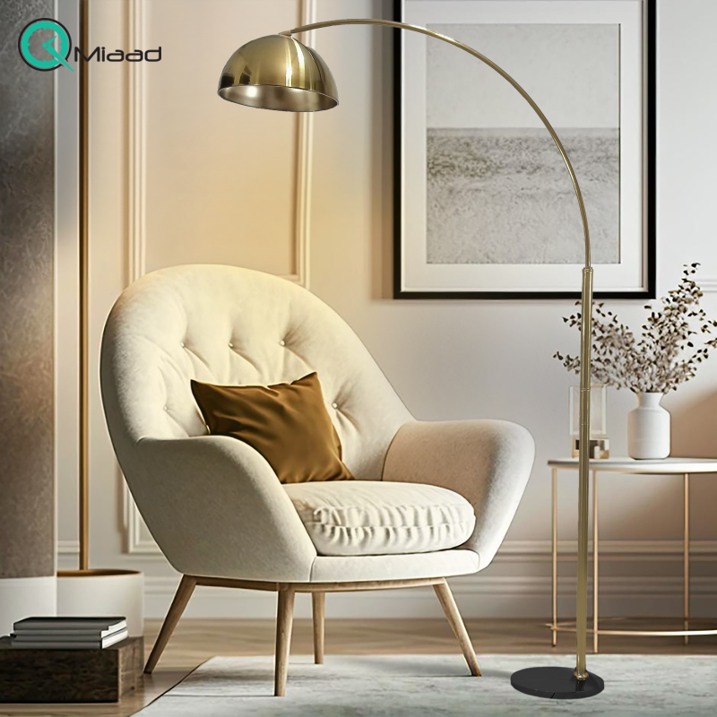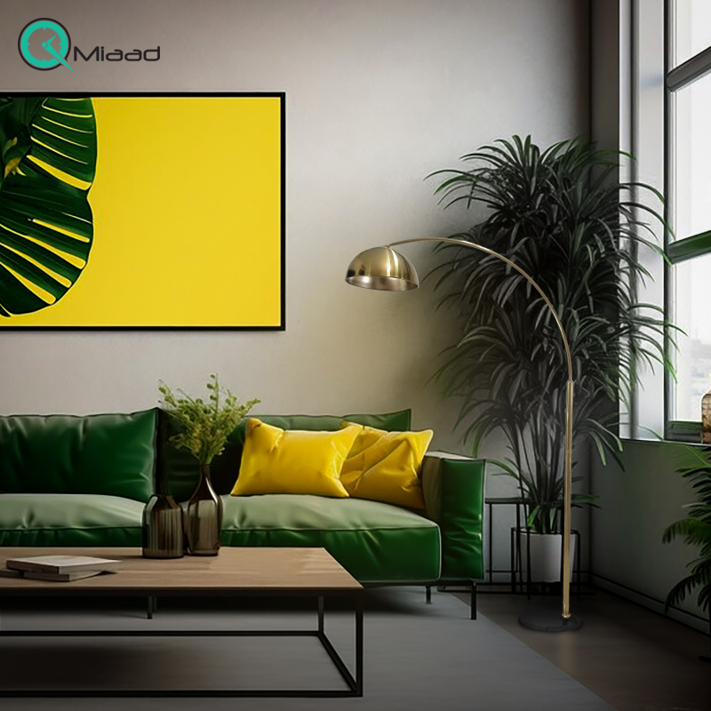 آباژور سالنی مدل 173، آباژور ایستاده مدرن و ظریف با پایه آهنی، دارای 1 سرپیچ و تنوع رنگ بندی با آبکاری فورتیک، فوق العاده با کیفیت، رنگ طلایی