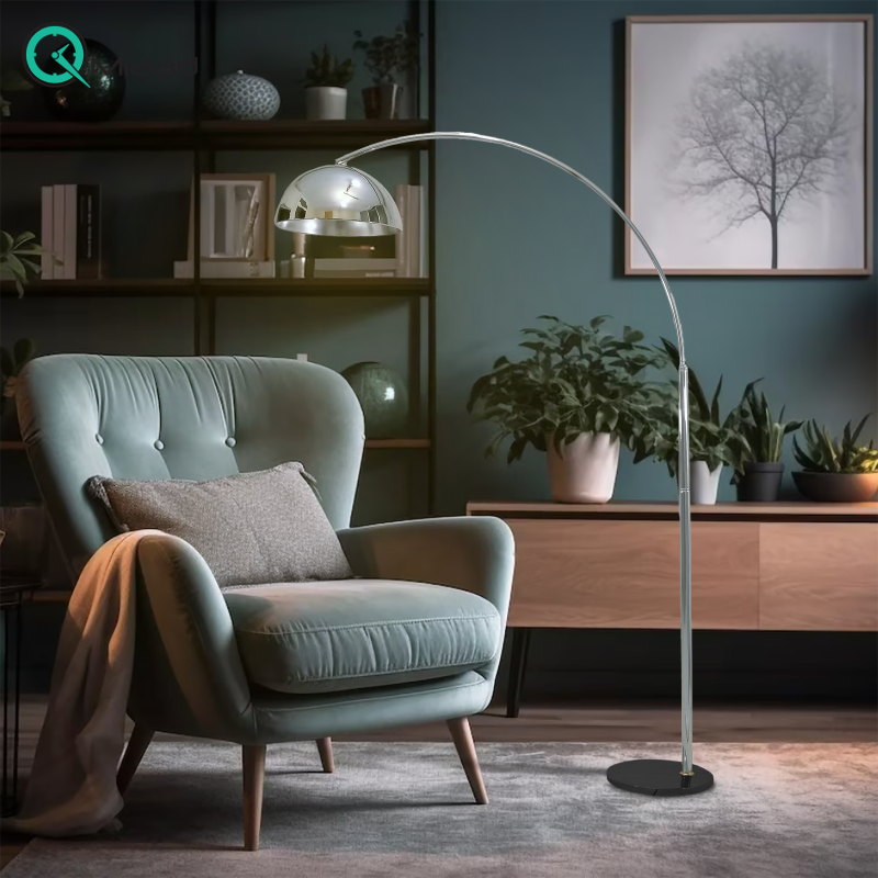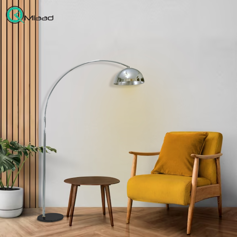 آباژور سالنی مدل 173، آباژور ایستاده مدرن و ظریف با پایه آهنی، دارای 1 سرپیچ و تنوع رنگ بندی با آبکاری فورتیک، فوق العاده با کیفیت، رنگ نقره ای