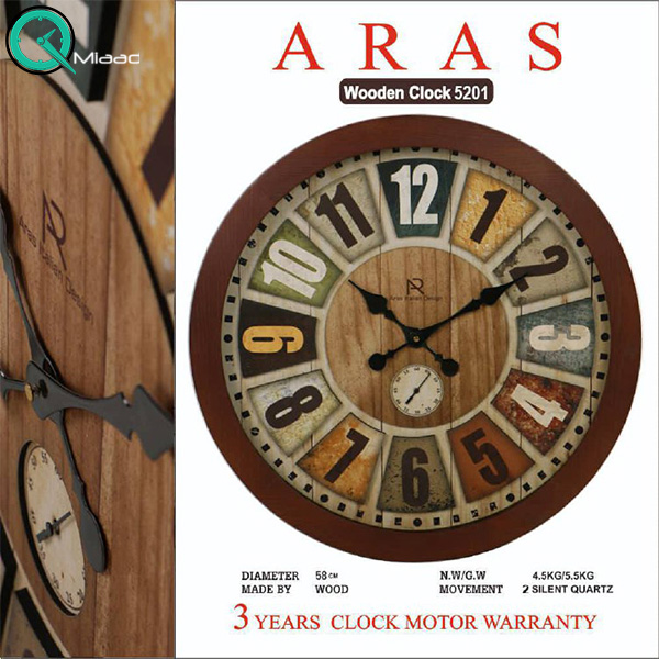 با بدنه چوبی با کیفیت از استحکام قابل قبولی برخوردار می باشد. طراحی اعداد لاتین بزرگ باعث خوانایی بیشتر این ساعت دیواری شیک شده است. در طراحی صفحه ااز موتور ثانیه شمار آرام گرد استفاده شده است که زیبایی ساعت را دوچندان کرده است و مناسب افرادی است که به صدای تیک تاک حساس هستند. هر دو موتور این ساعت ساخت کشور تایوان می باشد که کیفیت بسیار بالایی دارد و خیال شما را برای انتخاب این ساعت دیواری شیک راحت می کند.