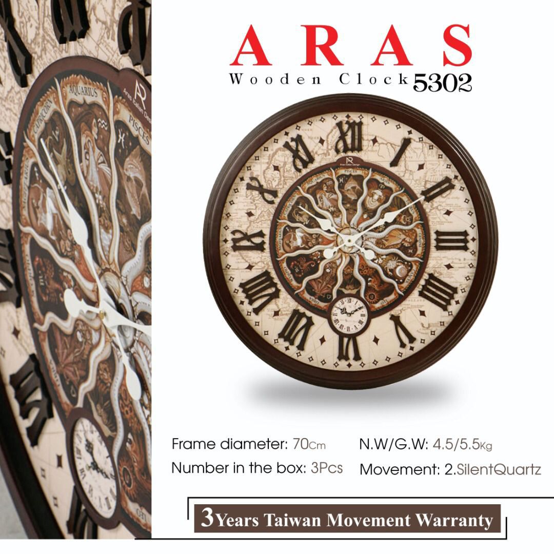 بدنه از جنس چوب با کیفیت، استفاده از طیف رنگی مناسب و اعداد بزرگ لاتین برای زیبایی و خوانایی بیشتر، موتور ثانیه شما ر آرام گرد و موتور اصلی تایوانی