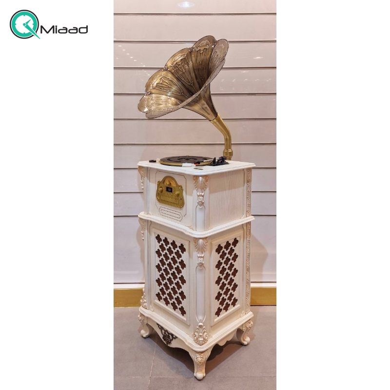 گرامافون ایستاده آنتیک پنج‌کاره کد 2221 رنگ کرم یکی از گرامافون های فوق العاده وب‌سایت میعاد تایم می باشد که در بخش گرامافون های این سایت موجود شده است. یکی از به یاد ماندنی ترین، نوستالژیک ترین و از نظر بصری خیره کننده اشیاء گرامافون است که بسیار دوست داشتنی و جذاب است. شنونده می تواند به لطف این دستگاه کلاسیک به فایل صوتی مورد نظر گوش دهد. در برخی از خانه‌ها، گرامافون هنوز به صورت دوره‌ای استفاده می‌شود، هرچند به ندرت، همانطور که قبلاً استفاده می‌شد. گرامافون ها زمانی فقط برای پخش صدا، موسیقی و گاهی رادیو استفاده می شدند، اما با ویژگی های امروزی این سری از محصولات، اکنون با سیستم های پخش حرفه ای همتراز و یا حتی از آنها پیشی گرفته اند. یکی از مزیت های منحصر به فرد این طیف از محصولات لوکس، حفظ ظاهر نوستالژیک و قدیمی گرامافون است