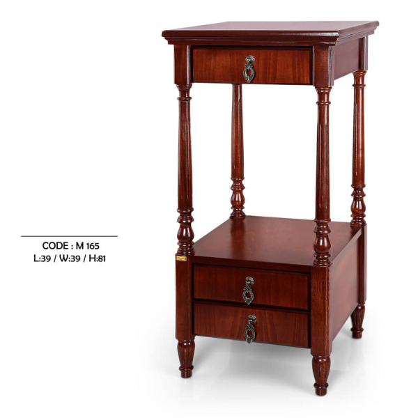میز تلفن چوبی پایه دار مدل 165 را می توان کی دیگر از سری میز های میعاد تایم دانست. میز تلفن در خانه علاوه بر اینکه به عنوان مکانی برای نگهداری تلفن رومیزی می باشد، می تواند زیبایی دکوراسیون را تا حد زیادی افزایش دهد. بهترین مکان برای این وسیله اتاق خواب نزدیک تخت یا کنار میز تلویزیون میباشد. این کار باعث می شود تا هر زمان که به تلفن نیاز داشتید، در دسترس شما باشد و بتوانید استفاده کنید. در حال حاضر مدل ها و طرح های زیادی از تلفن در وبسایت میعاد تایم وجود دارد، بنابراین می توانید بر اساس نیاز خود و هماهنگی با دکوراسیون، بهترین مدل را انتخاب کنید. میزهای تلفن انواع مختلفی دارند و در اکثر منازل رایج هستند.