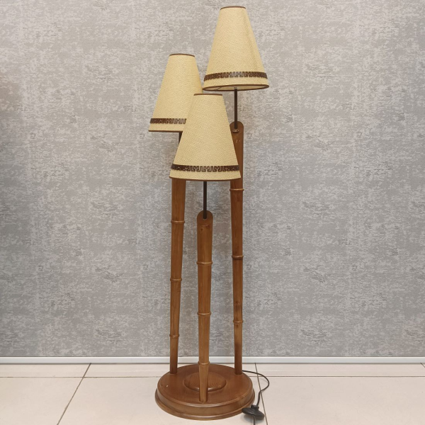 آباژور سالنی سه شعله مدل نیلوفر 3 کد 3365، آباژور ایستاده با متریال چوب روسی درختان کاج یا سرو، طراحی روستیک و بافت طبیعی چوب، بسته بندی جدا آباژور و حباب ها