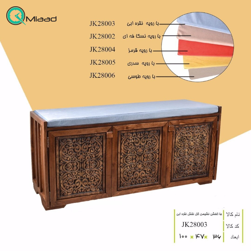 جاکفشی نشیمن مدل گل نقش کد JK28003 از سری محصولات زیبا و دست ساز برند آسوریک می باشد که در دسته جا کفشی برای شما موجود شده است. فضای ورودی و راهروها همیشه به عنوان اولین نقاط در دسترس و اولین نقاط دکوراسیون دیده می شوند؛ این فضا برای متخصصین دکوراسیون و چیدمان منزل اهمیت داشته و در اکثر اوقات سعی می شود که به بهترین نحو ممکن این تغییر دکور انجام شود. منظور فضایی است که جا کفشی به خود اختصاص می دهد و هم فضایی است که در مقابل اشغال بخشی از فضایتان در اختیارتان قرار می دهد تا انواع کفش ها، صندل ها، بوت، چکمه و کتانی هایتان را در آن قرار دهید تا بخش زیادی از بی نظمی فضایتان کاسته شود.