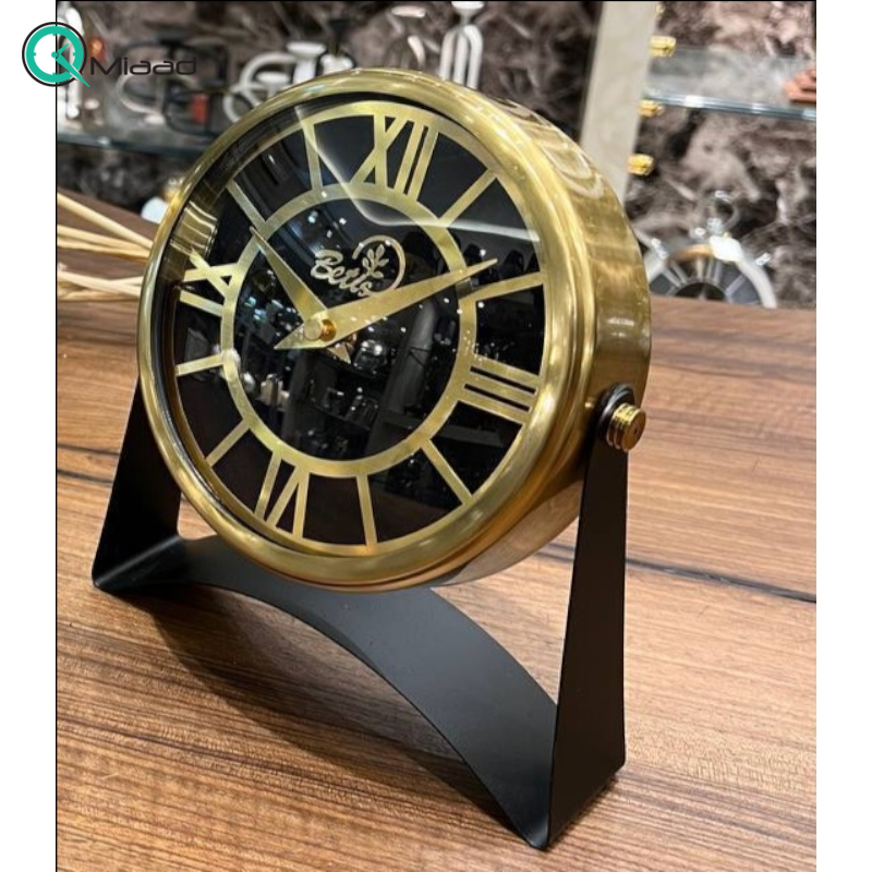ساعت رومیزی بتیس مدل 1525، ساعت رومیزی فلزی لوکس، با تنوع رنگ بندی و رنگ آبکاری مات، اعداد رومی در صفحه ساعت، ترکیب رنگ طلایی صفحه مشکی