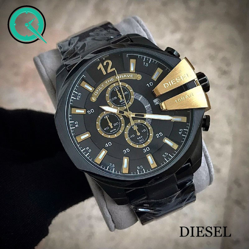 بهترین کیفیت موجود در بازار HIGH COPY +++A، سه موتوره کرنوگراف با ثبت دهم ثانیه، موتور میوتا ساخت ژاپن، دارای نشانگر تاریخ، تمام استیل رنگ ثابت و ضد حساسیت، شیشه کریستالی مقاوم در برابر خش، مقاوم در برابر آب (در حد پاشش آب)، قطر صفحه : 50 میلیمتر ضخامت ساعت : 13 میلیمتر، وزن ساعت : 205 گرم، رنگ های به کار رفته : طلایی و مشکی، دارای جعبه چوبی با مارک دیزل