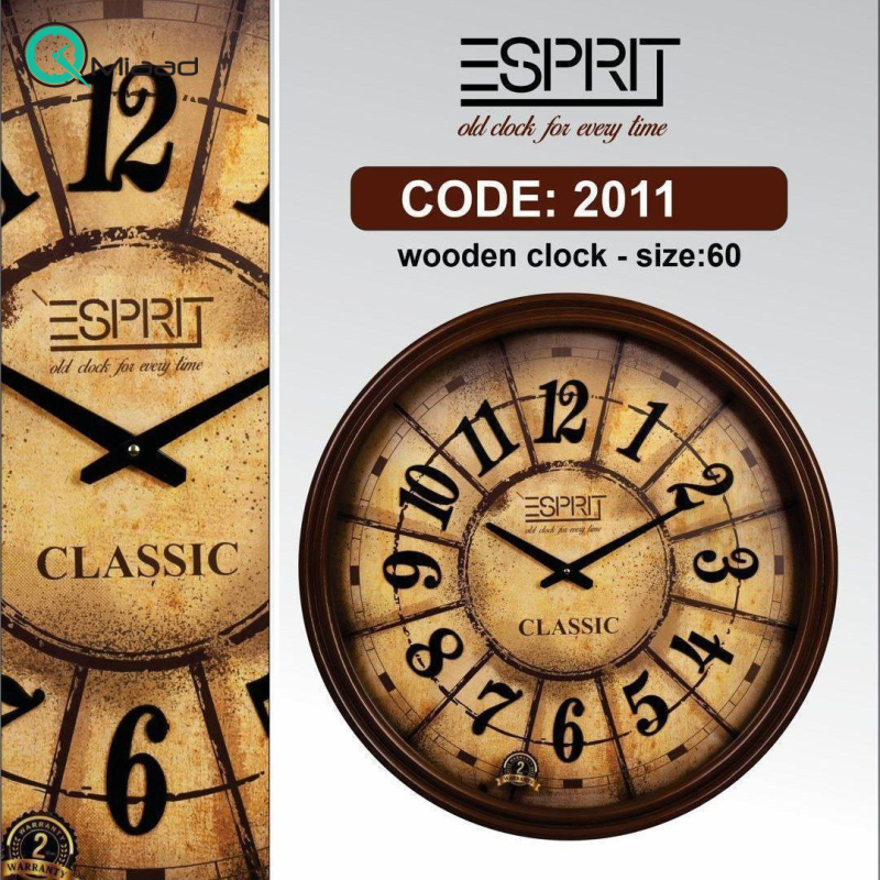 ساعت دیواری چوبی اسپریت مدل 2011، ساعت زیبا و کلاسیک با رنگ قهوه ای، دارای سه سایز، متریال چوب، دارای اعداد درشت لاتین، سایز 50