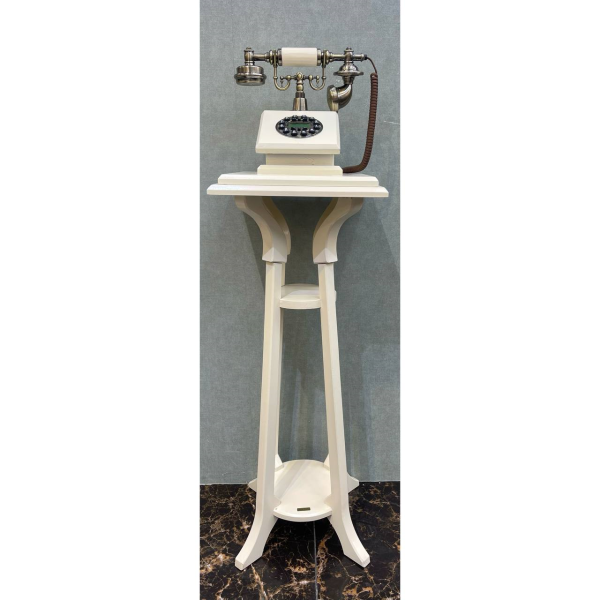 تلفن پایه دار چوبی مدل 2023، تلفن کلاسیک و ایستاده مدل گرندفون Grand Phone | تلفن ایستاده کلاسیک با شماره گیر دکمه ای، رنگ سفید