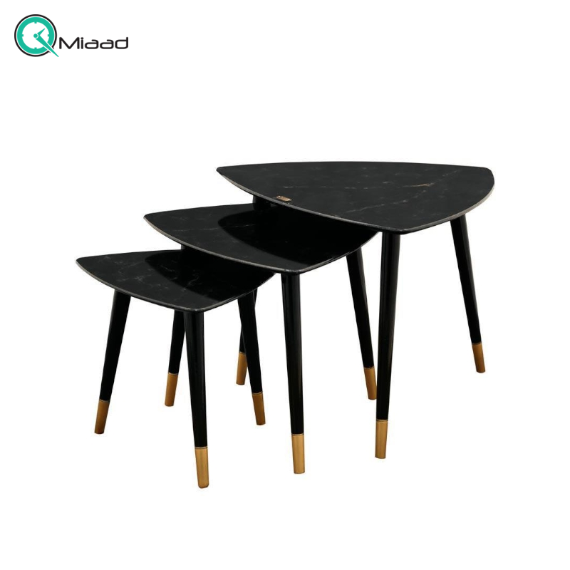 دارای 3 عدد میز عسلی با ضخامت 32 میل با بهترین کیفیت در بازار، رنگ مشکی