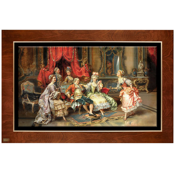 تابلو نقاشی چوبی لوتوس مدل لویی پانزدهم کد FWB-120x80-T اثر هنرمند ایتالیایی سزار آگوستینو دتی یکی از زیباترین تابلوهای این نقاش می باشد. هنرمند معروف ایتالیایی در اکثر آثار خود سعی بر نشان دادن طبقه اشرافی و نوع و سبک زندگی آن ها را دارد. این تابلو توسط گروه دکوراسیون حرفه ای با کیفیت بسیار بالا و حساسیت و دقت در تشابه و نزدیکی با تابلو اصلی طراحی و تولید گردیده است. این گروه حرفه ای تابلو های معروف نقاشان بزرگ تاریخ مانند داوینچی ، دتی ، ریچی ، کووالوف و … را با کیفیت و تشابه بسیار نزدیک با نسخ اصلی آن ها تهیه و محصولات بسیار خاص و منحصر به فرد و مناسب با سلیقه شما تولید و وارد بازار می کند.