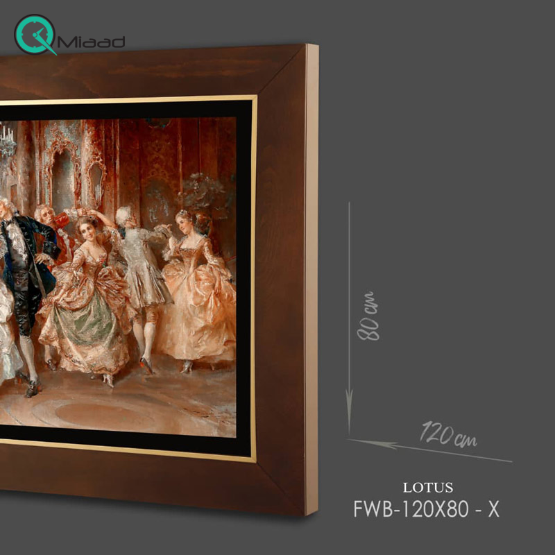 تابلو نقاشی چوبی لوتوس مدل رقص جمعی سایز 120x80 از سری تابلو های شرکت لوتوس می باشد. تابلو نقاشی رقص جمعی اثر هنرمند معروف اطریشی August Stephan Sedlacek است. آگست استفان، نقاش معروف اطریشی، آثار زیبایی از طبقه اشراف زادگان دارد که پر از جزئیات گرم و خیره کننده است که نشان از تسلط نقاش و درک کامل وی از طبقات بالا و اشرافی است. رقص جمعی یکی از قشنگ ترین آثار این نقاش است که بیننده را محو و خیره،جزئیات بی نظیر خود می کند.