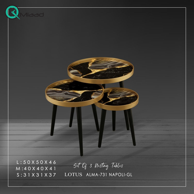 میز عسلی سه تکه برند لوتوس کد 731 از سری میز های وب سایت میعاد تایم می باشد. میز عسلی یکی از بهترین لوازم پذیرایی محسوب می شود که در مهمانی ها مورد استفاده قرار می گیرد. خیلی این سری میزها محبوب و قابل استفاده هستند. این میزها و میز سه تکه لوتوس 731 که در ادامه به معرفی آن می پردازیم، ساده و در عین حال زیباست.
